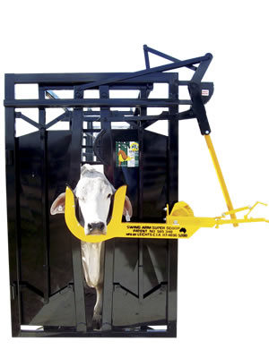 The Swingarm Super Scoop has been designed to restrict side to side, as well as, up and down movement of the animals head. The rubber lined scoop tilts the head into a positon which makes mouthing, drenching, ear-tagging, treatment to the eyes or any other part of the head easier and more efficient. The Swingarm Super Scoop is the ideal unit for providing a safer working environment for both animal and operator.